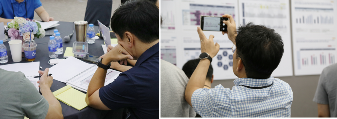 본 프로젝트에서는 이머징 표준 조직진단 문항에 더해, C사의 핵심가치 내재화 수준을 정밀하게 점검할 수 있는 특화 문항을 별도로 설계했습니다. 특히 부정적 리더십과 부정적 팔로워십을 포착할 수 있는 문항을 추가하여, 핵심가치가 실제 의사결정의 준거로 작동하고 있는지, 혹은 개인의 편의에 따라 왜곡되어 소비되고 있는지를 면밀히 관측했습니다. 또한 리더의 객관적 성과평가와 솔직한 피드백 제공 여부 등 조직 운영의 본질적 요소까지 함께 진단함으로써 문화의 표면이 아닌 작동 방식을 들여다보았습니다. 정량 진단과 병행하여 국내외 약 60건의 FGI/MI를 실시하고, “책임감 없는 동료”로 인한 팀원들의 피로도, “R&R 조율이 미흡한 리더”에 대한 현장의 목소리 등 구체적 사례를 심층적으로 수집했습니다. 이를 통해 데이터 이면에 존재하는 조직의 정서와 긴장 지점을 입체적으로 해석할 수 있었습니다. 이후 진단 결과는 임원·팀장·팀원급 전사 구성원에게 투명하게 공유되었으며, 계층별 워크숍을 통해 현재 조직의 위치를 직면하도록 설계했습니다. 이를 통해 변화는 선택이 아닌 생존을 위한 필수 과제임을 전 구성원이 체감하도록 하고, 조직 쇄신의 필요성에 대한 공감대를 형성했습니다.